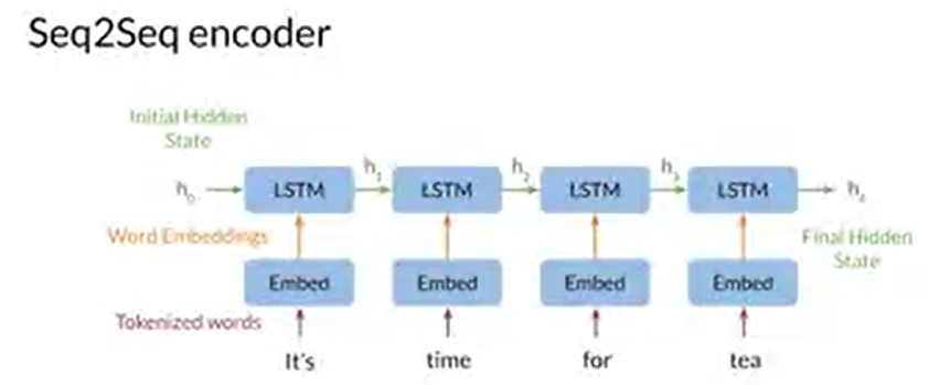 위의 사진에서 보면, h1은 It's에 대한 정보를, h2는 It's와 time에 대한 정보를 각각 포함하고 있다. 이 과정이 반복되어, h4에서는 It's time for tea 문장에 대한 정보가 압축되어 저장된 상태가 된다.