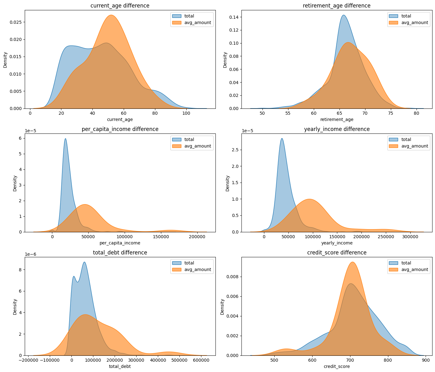 sns.kdeplot(data=df_avg, x=col, label='avg_amount', fill=True, alpha=0.6, ax=axes[i])
