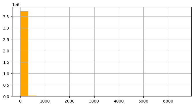 merge_['amount'].hist(bins=20, color='orange', figsize=(8, 4))