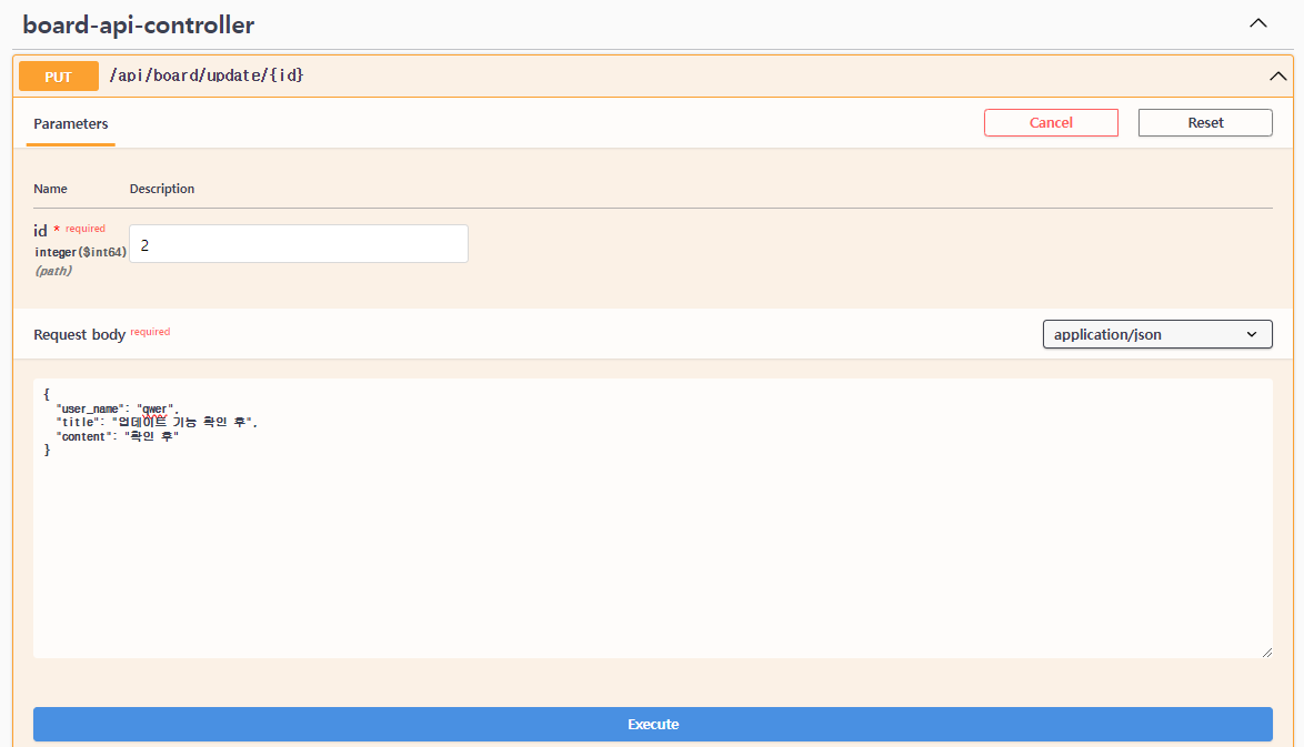 // 기존 게시판의 제목, 내용, 업데이트 시간, 상태 등을 업데이트
