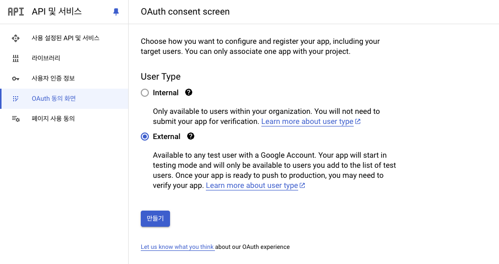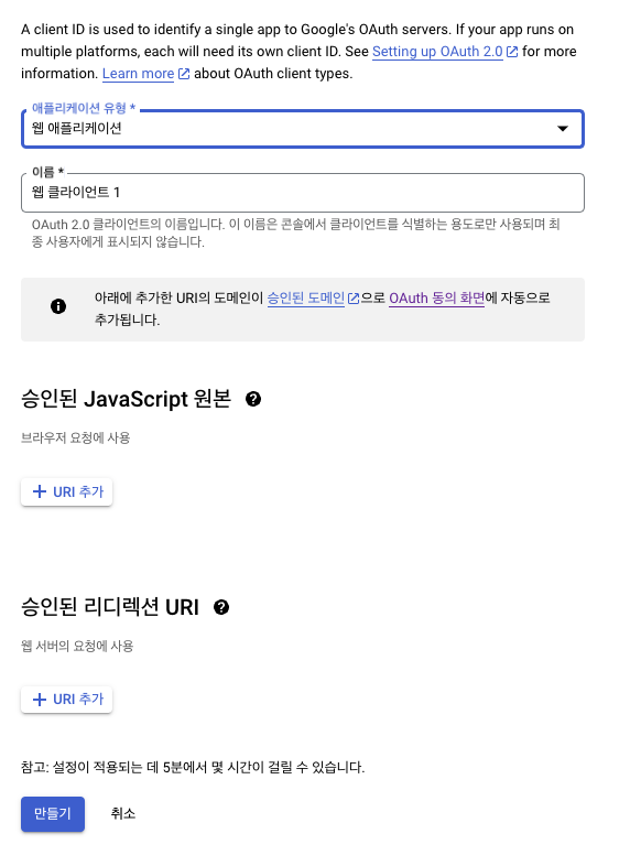 해당 글에서는 구글 로그인 API를 사용하기 위해 Google Cloud Console 설정하는 법을 작성해보았다. 다음 글에는 안드로이드 앱을 위한 SHA-1 인증서 디지털 지문을 얻는 방법에 대해 작성해보려 한다!!