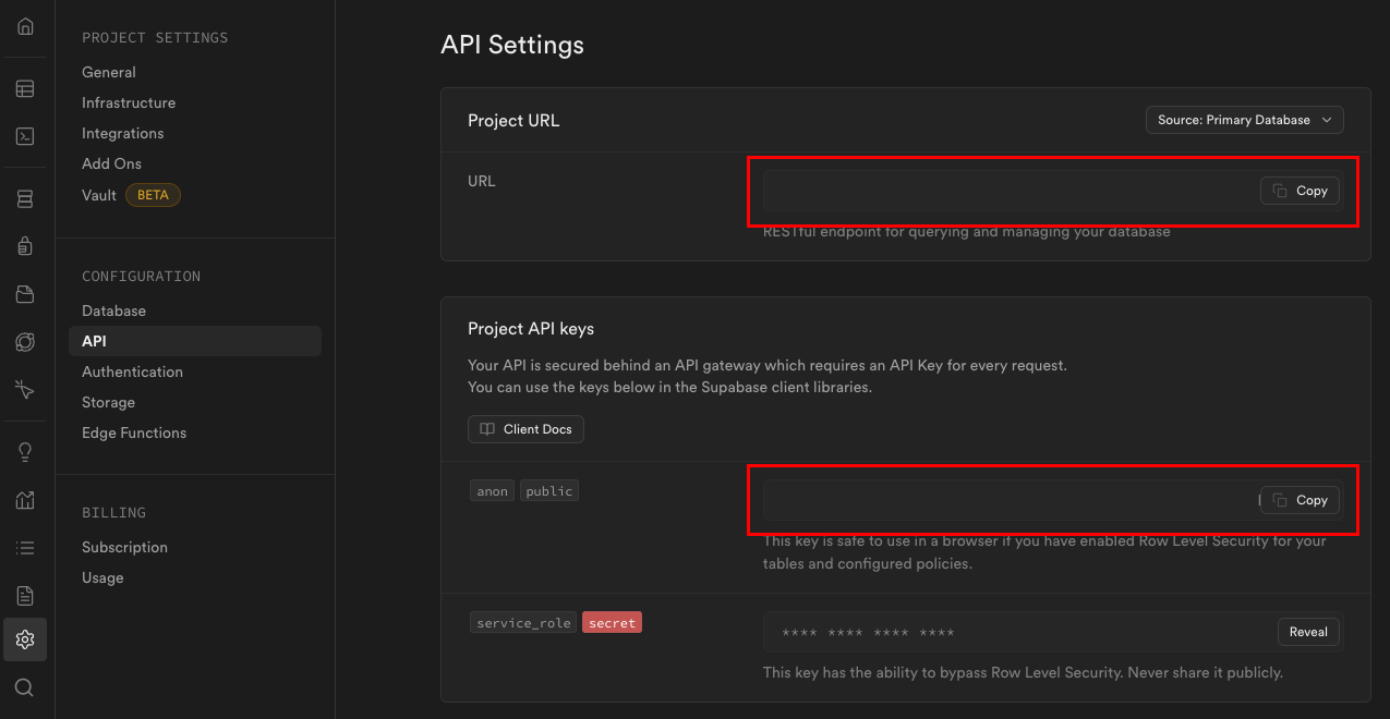 url: 'Supabase URL',