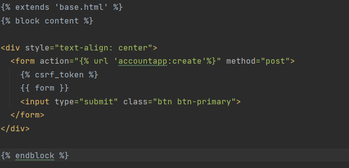 그리고 urls.py에서 회원가입을 할 경로를 만들었다. path('create/', AccountCreateView.as_view(), name='create')