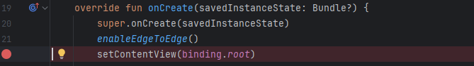 안드로이드 스튜디오에서 코드 왼쪽의 숫자 부분을 클릭하면 설정할 수 있습니다.