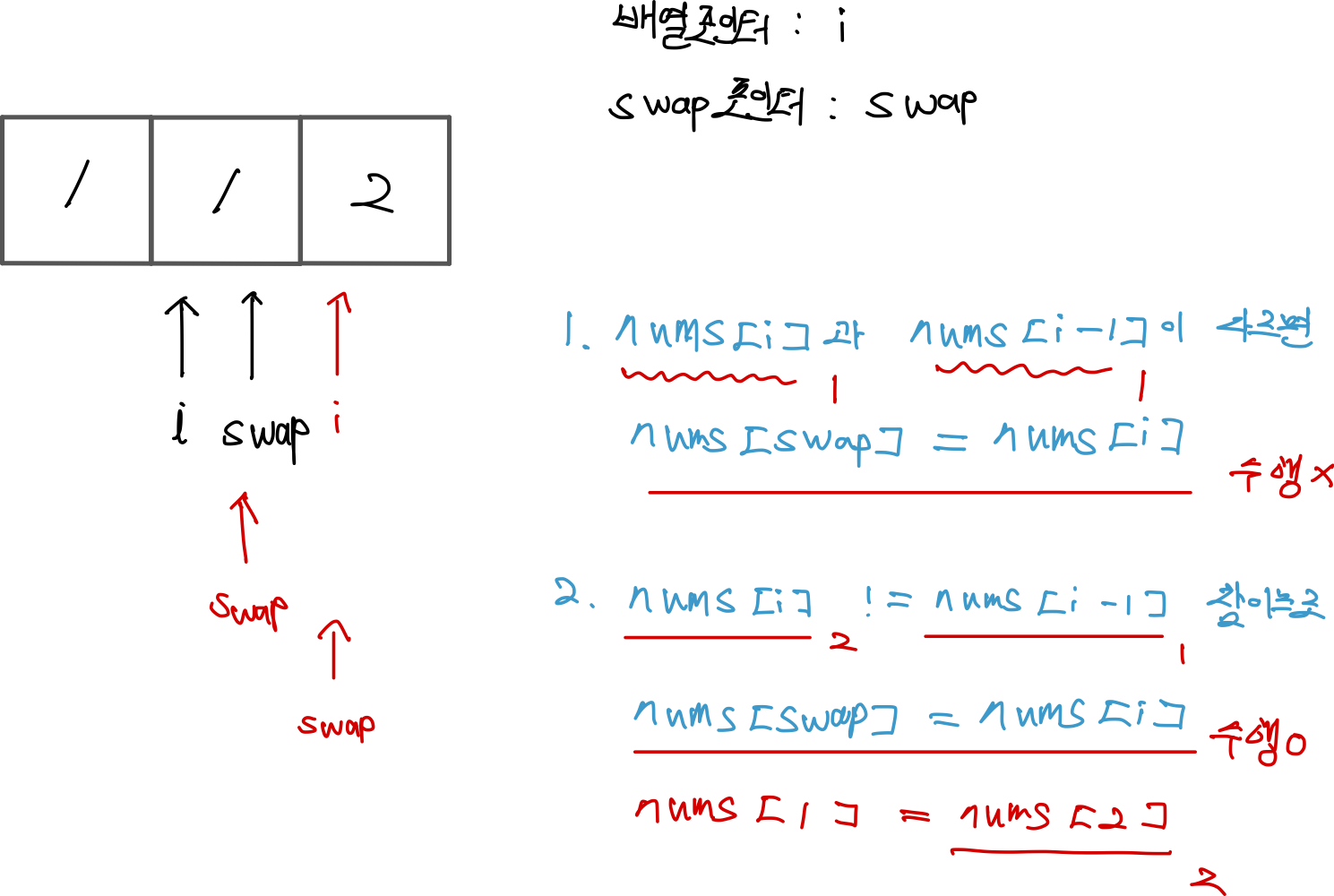 nums[swap포인터] = nums[배열포인터]