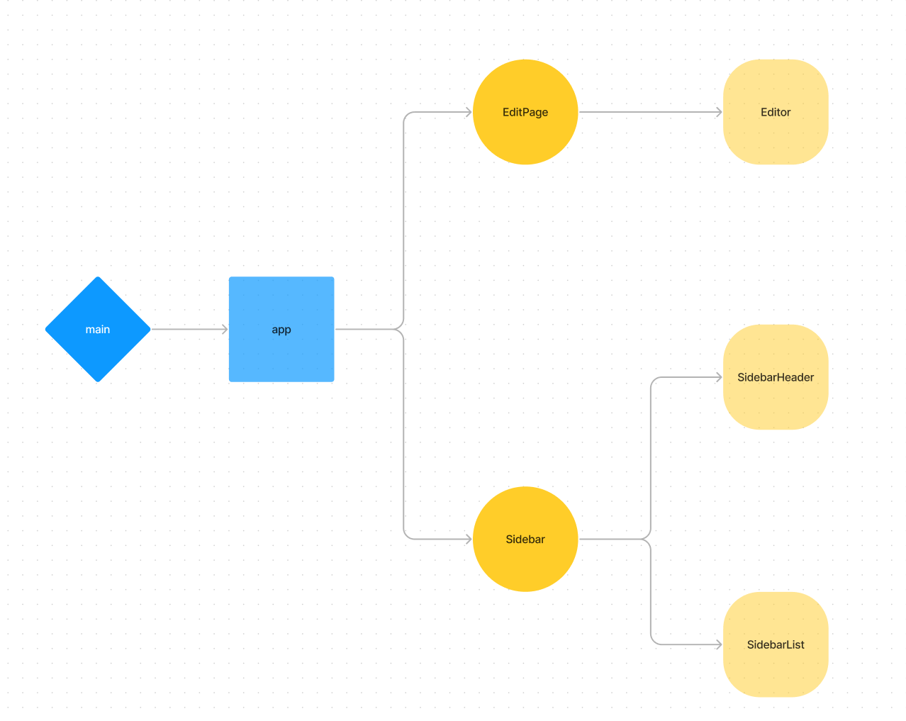 크게 문서들을 관리하는 Sidebar, 본문을 관리하는 EditPage가 있다.