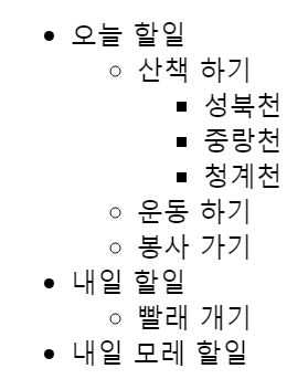 태그 구조를 만들면 리스트의 하위 리스트를 만들 수 있다.