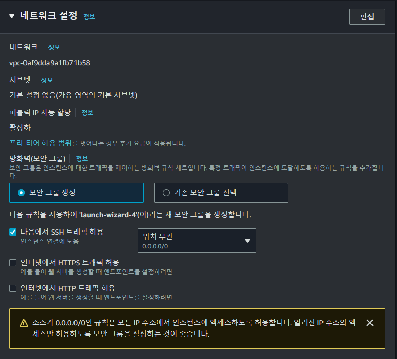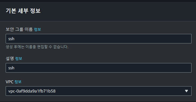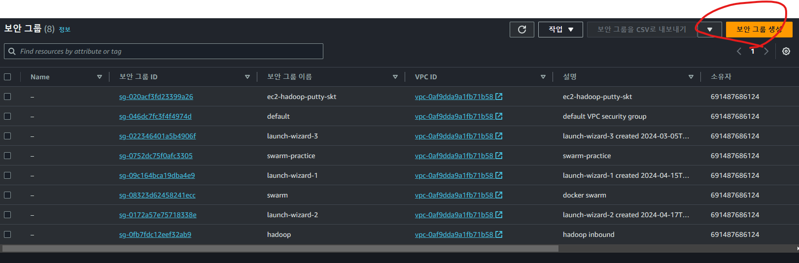ec2 인스턴스에 사용할 보안 그룹을 생성합니다. AWS 콘솔에서 네트워크 및 보안의 보안그룹으로 이동하고 보안그룹을 생성합니다.