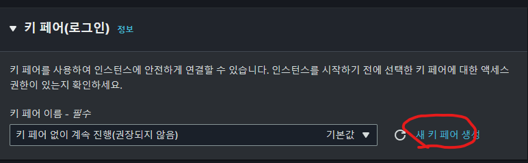 기존의 키 페어가 있다면 기존의 키 페어가 없다면 새 키 페어를 생성합니다.