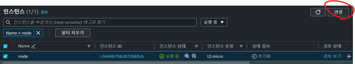 ec2 콘솔에서 ec2 인스턴스에 접속합니다.