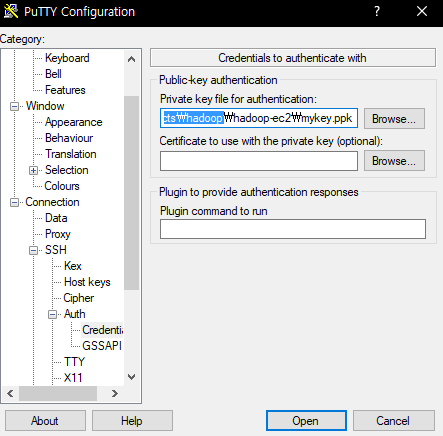 로컬 호스트에서 putty 설치 후 위에서 받았던 키를 이용해 원격 접속합니다.