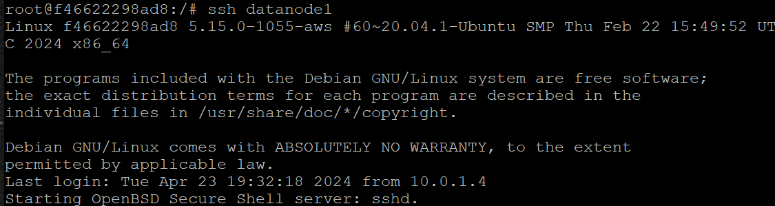 sudo docker run -it --name datanode2 --network my-net hadoop_base bash
