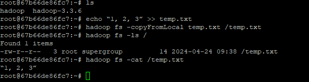 hadoop fs -copyFromLocal temp.txt /temp.txt