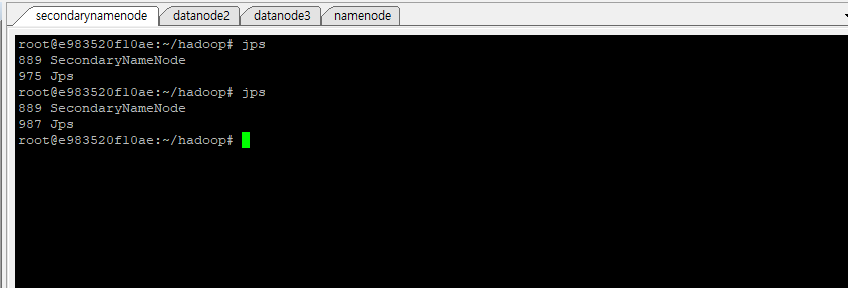 sudo docker run -it --name secondarynamenode --network my-net hadoop_base bash