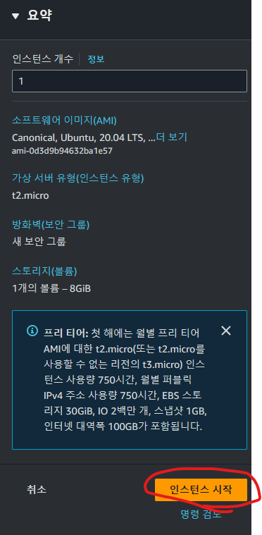 AWS - ec2 콘솔에서 인스턴스 시작을 클릭합니다.