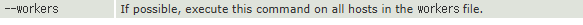 의 공식문서 따르면 workers 파일에 적혀 있는 모든 호스트에서 이 커맨드를 가능하다면 실행합니다. workers 파일에는 데이터노드들의 호스트 이름이 적혀있습니다. 네임노드를 실행하는 커맨드에서는 필요없는 옵션같습니다.
