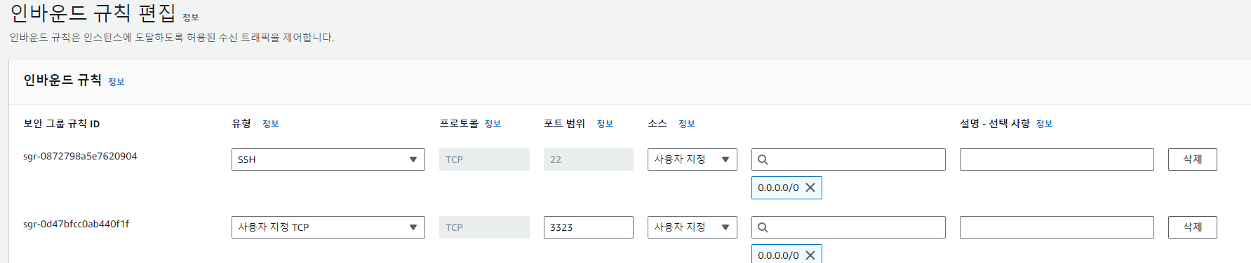 추가된 포트(ex.3323)으로 인바운드 연결을 허용해준다.