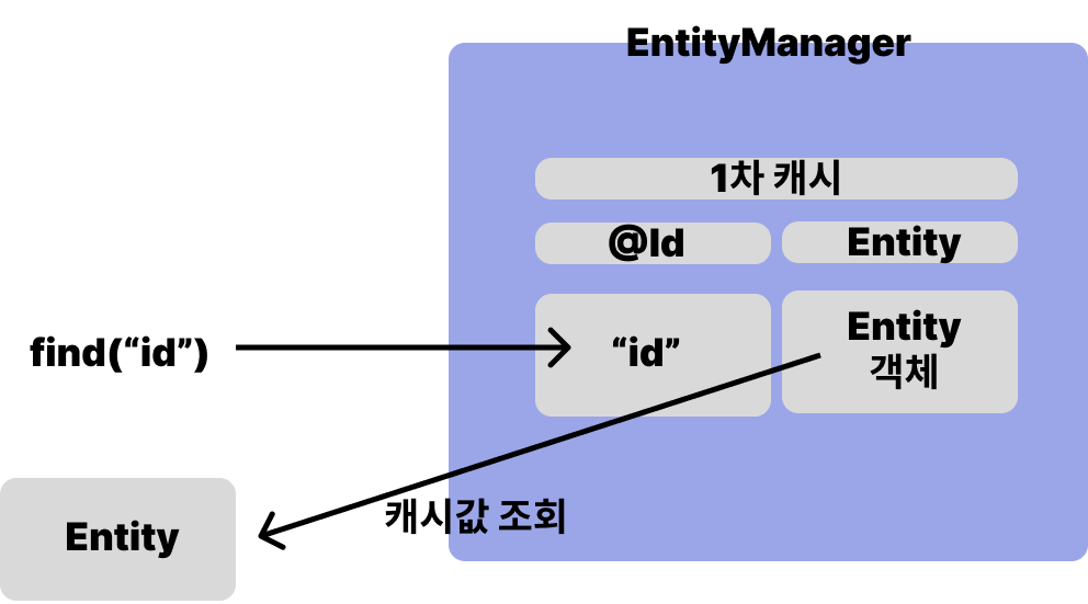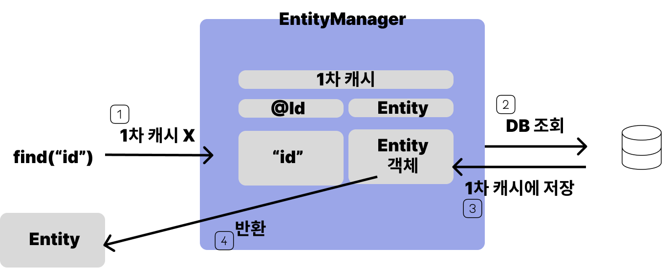 - 1차 캐시에서 식별자 값으로 Entity 탐색