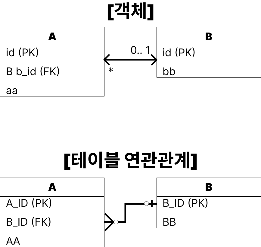 객체와 테이블의 연관관계의 차이!