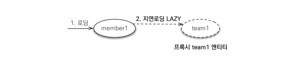 💡 연관관계 설정할 때는 식별자 값만 사용하므로 프록시를 사용하면 DB 접근 횟수를 줄일 수 있다.