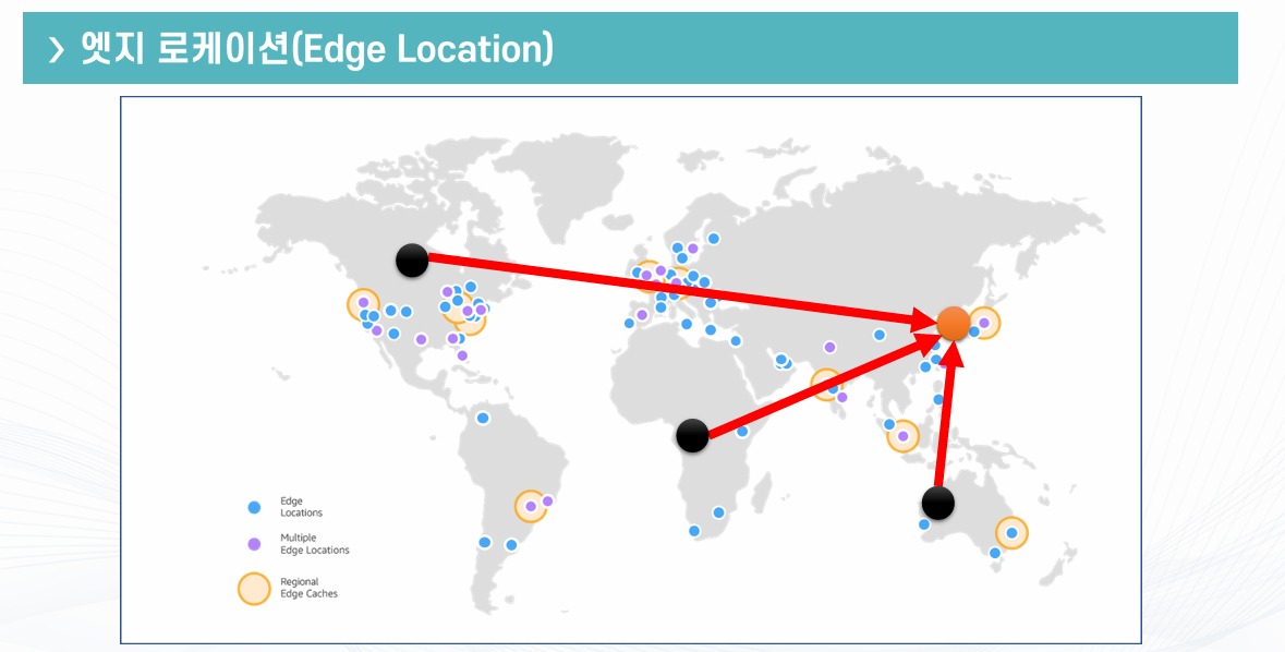엣지 로케이션 : AWS의 여러 서비스를 빠르게 제공하기 위한(캐싱) 거점