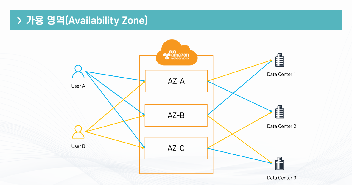가용영역 : 리전 내에 속한 하위 단위로, 하나의 리전은 보통 3개 이상의 가용 영역으로 구성