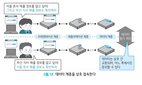 데이터 계층 ➡️ 애플리케이션 계층의 요구에 따라 데이터 입출력을 한다.