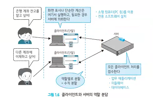클라이언트 또는 단말이라 불리는 소형 컴퓨터가 접속해서 이용하는 형태