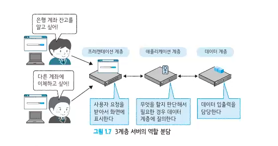 프레젠테이션, 애플리케이션, 데이터 계층으로 분리해 부하 분산과 관리 효율을 높인다.