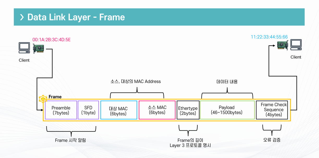 - 프레임은 2계층에서 사용하는 일종의 통신단위이다.