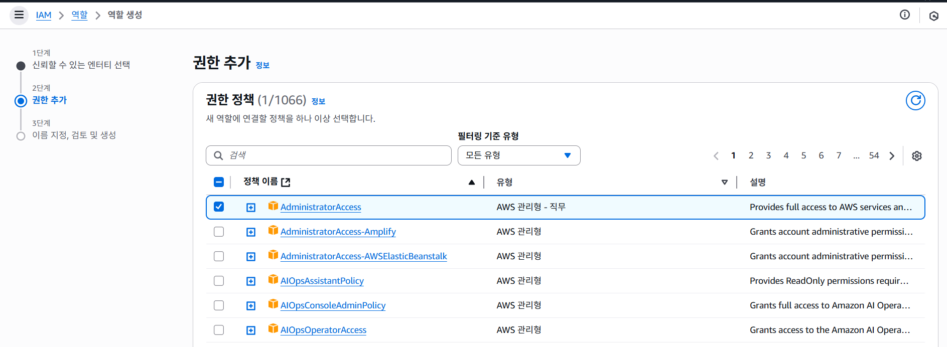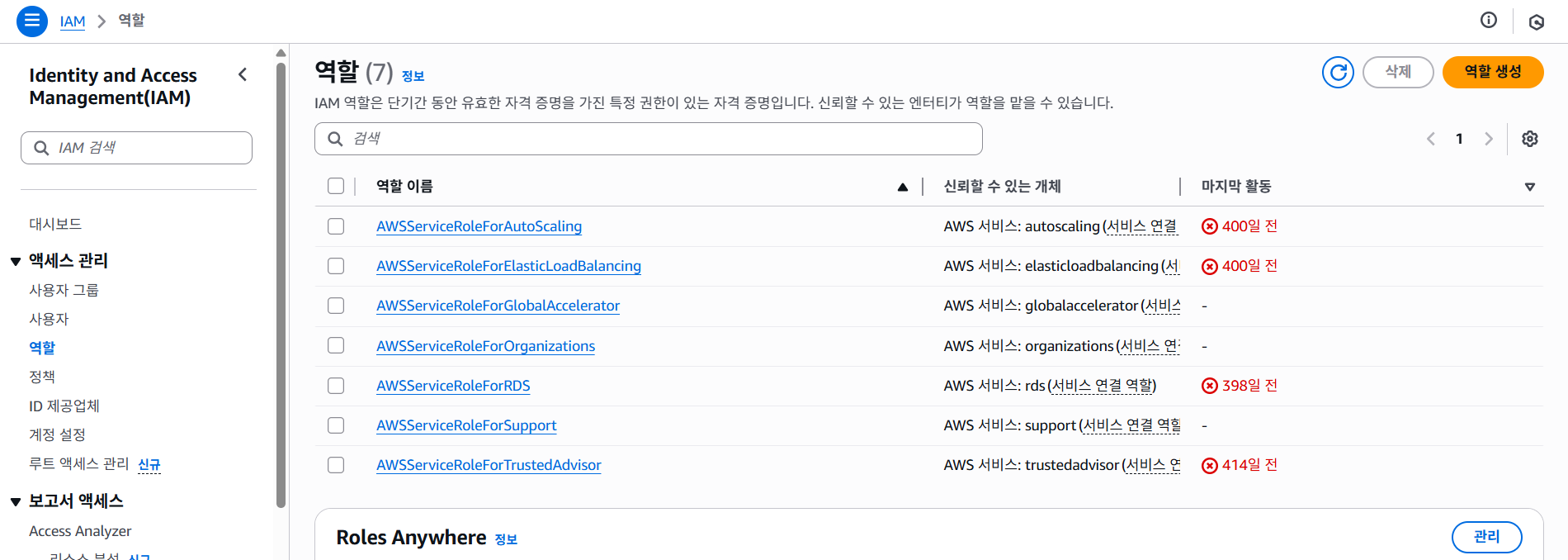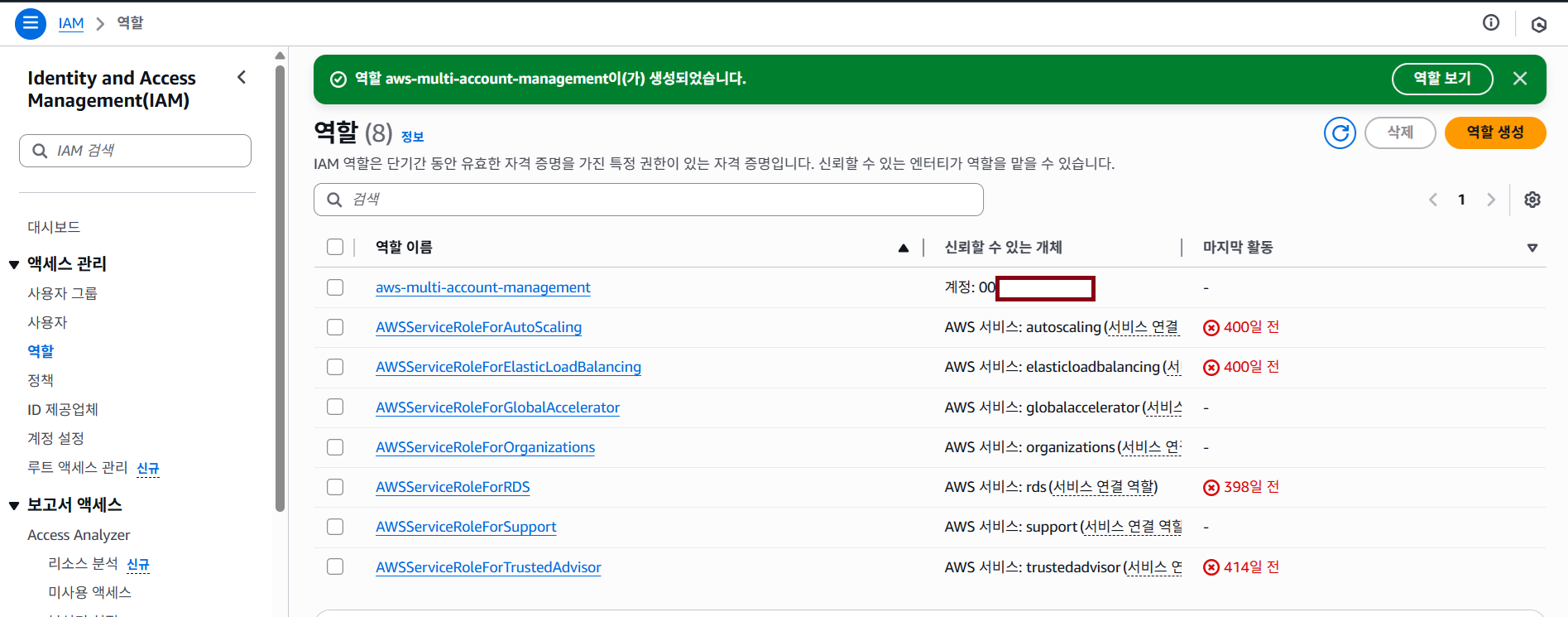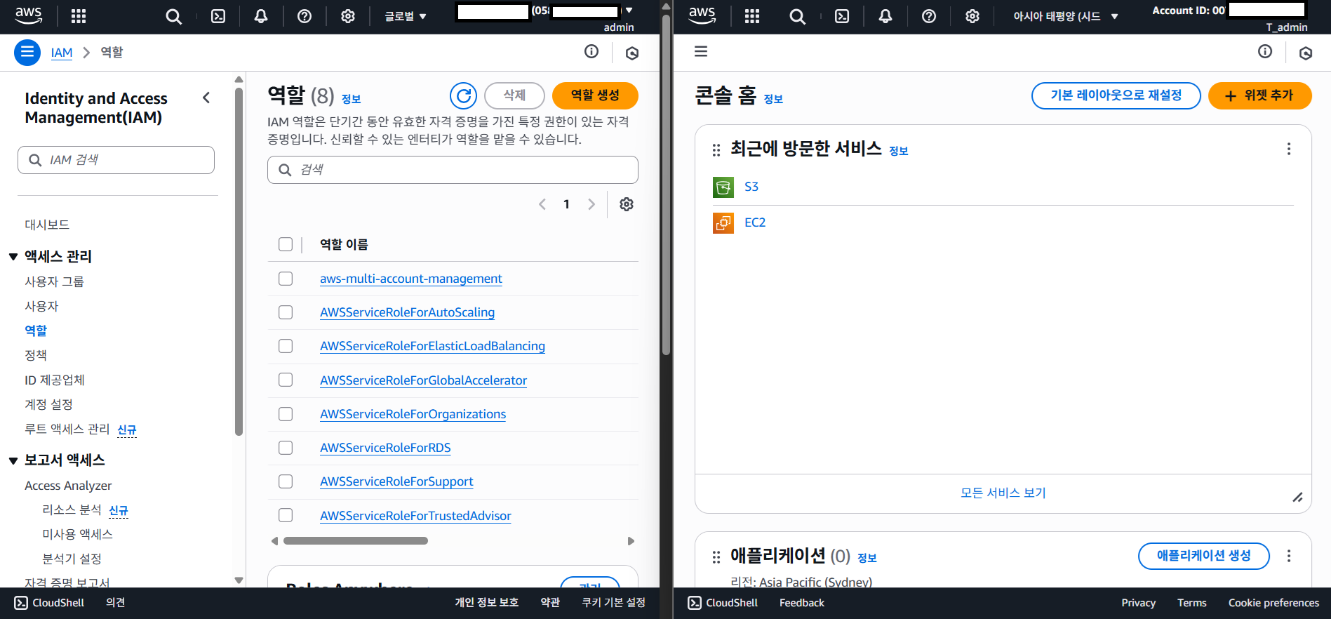 A계정에서 로그인 후 역할 생성