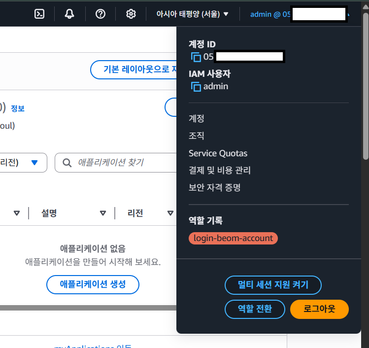 완료되면 Switch Role 클릭