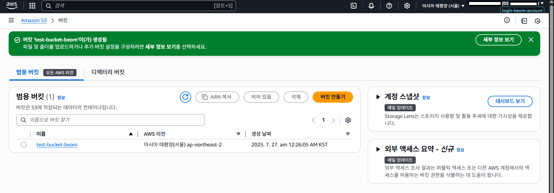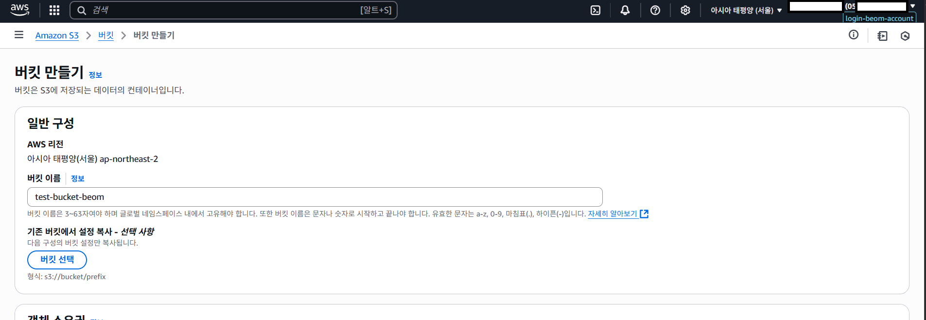 이름 : test-bucket-beom