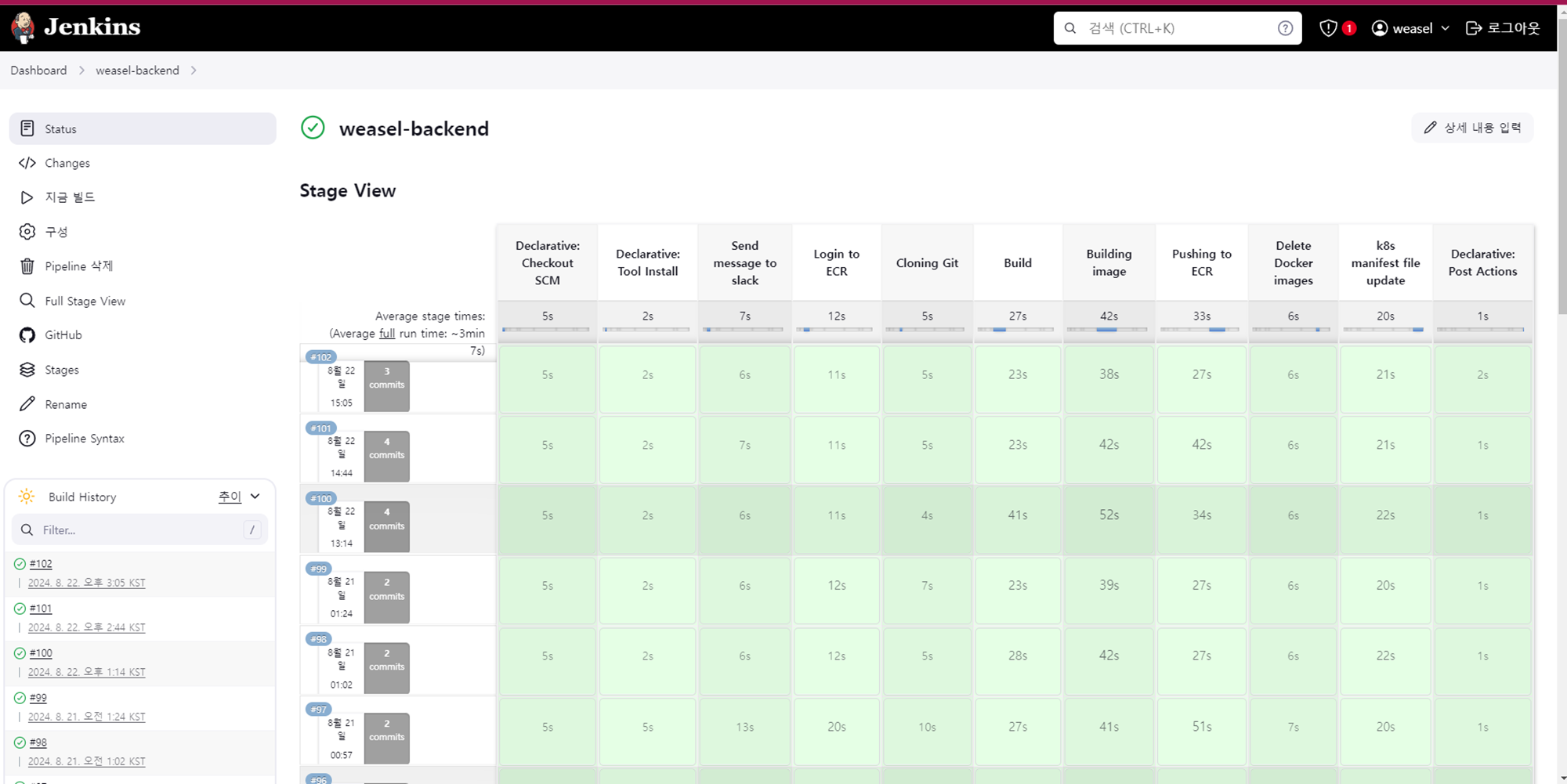 Jenkins ๋น๋ ํ์ดํ๋ผ์ธ ์คํ ํ๋ฉด
