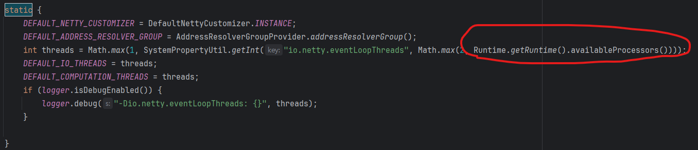 DefaultClientResources가 참조되는 순간 static block에서 ioThread의 초기화가 일어나는데이 개수가 실제 CPU의 개수와 같다.