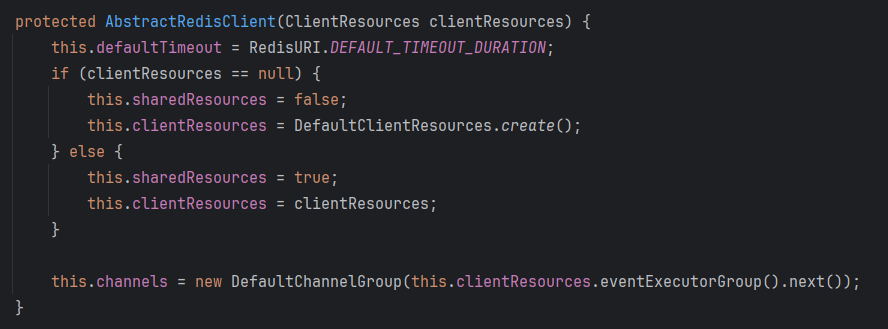 RedisClusterClient클래스는AbstractRedisClient를 상속받는데, 기본 생성자를 호출하면 하위 메서드를 호출하고DefaultClientResources.create()를 호출하게 된다.