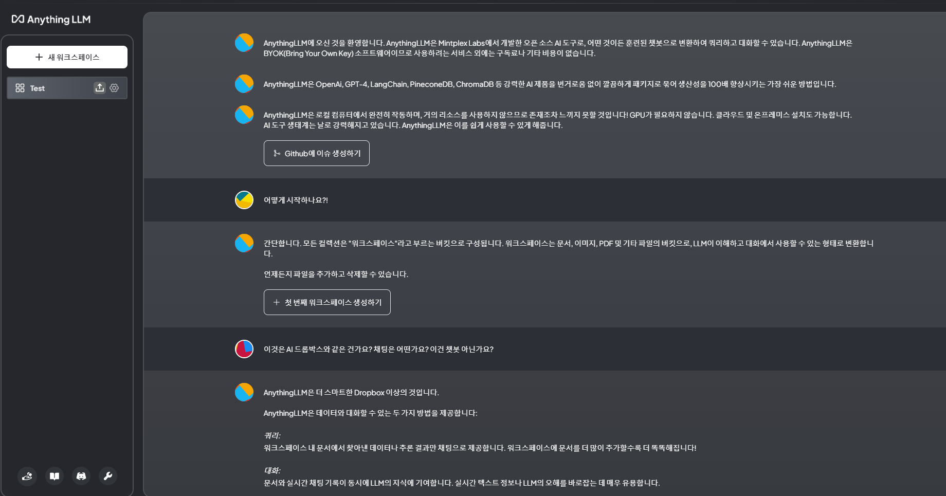 - 사용할 LLM 모델, 벡터 데이터베이스, 임베더를 설정해야 사용 가능.