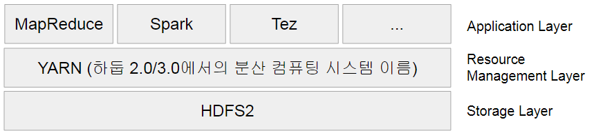 Resource Management Layer : YARN(하둡 2/3에서의 분산 컴퓨팅 시스템 이름)