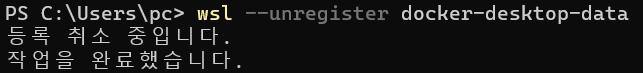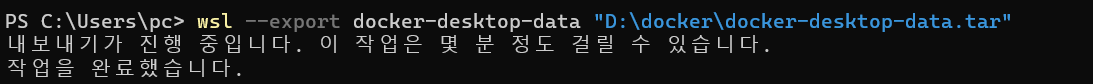 나의 경우에는 wsl --export docker-desktop-data "D:\docker\docker-desktop-data.tar"