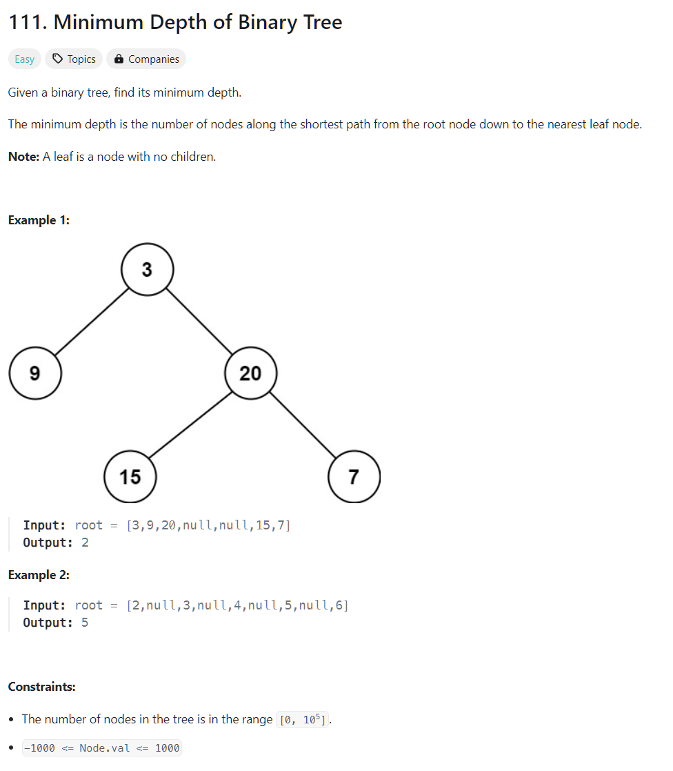 public int minDepth(TreeNode root) {