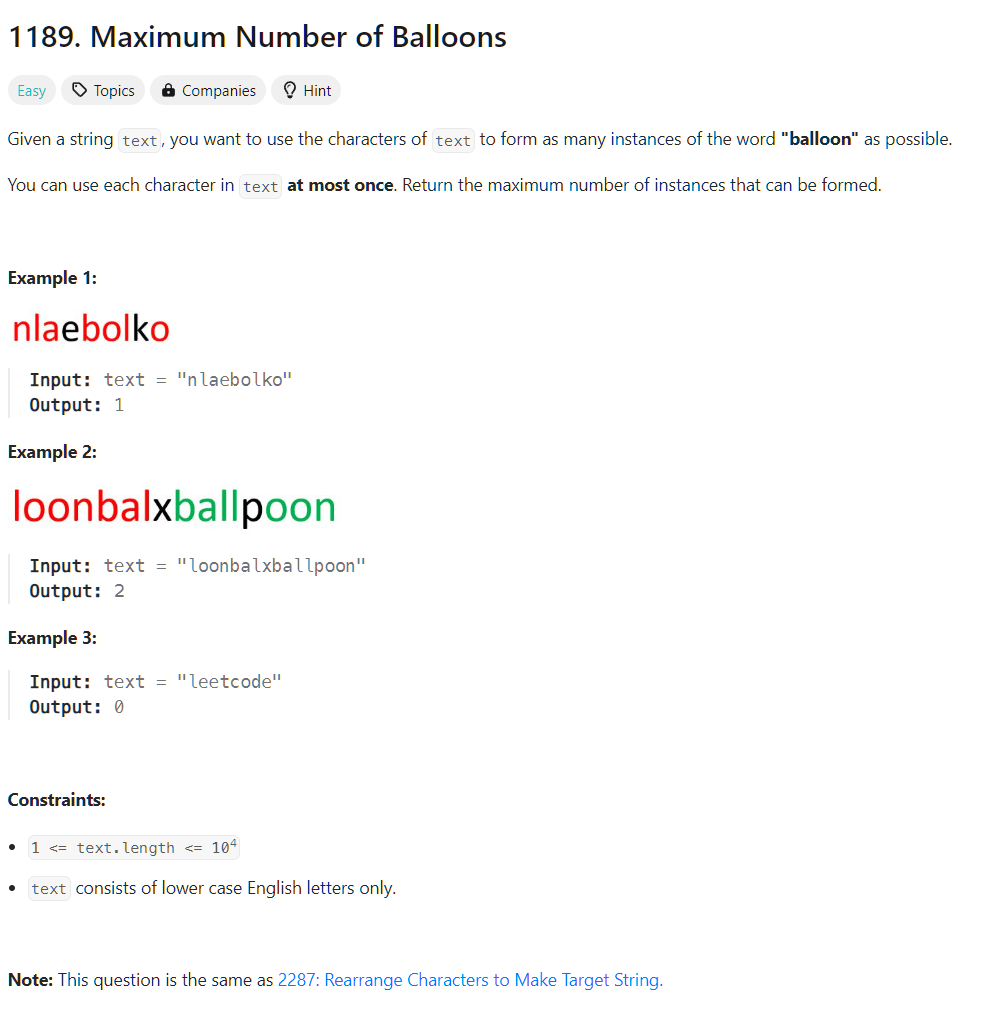 https://leetcode.com/problems/maximum-number-of-balloons/description/