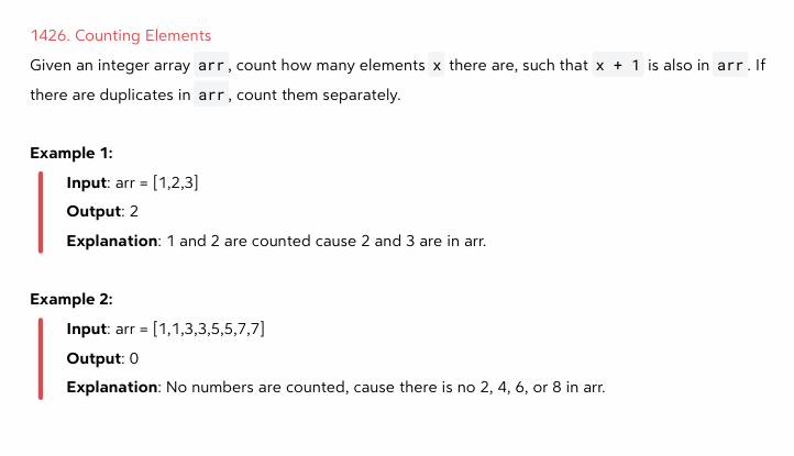 - 돌면서 n+1키의 값이 0보다 크다면, arr에 x+1이 존재하는 것이므로 count++하고 값을 -1