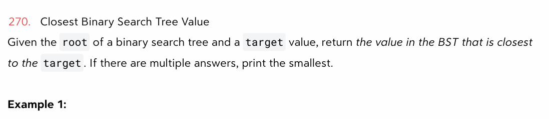 - target < node.val 이라면 target과 더 가까운 값은 현재 root 노드 또는 왼쪽에만 존재하므로 root.left탐색