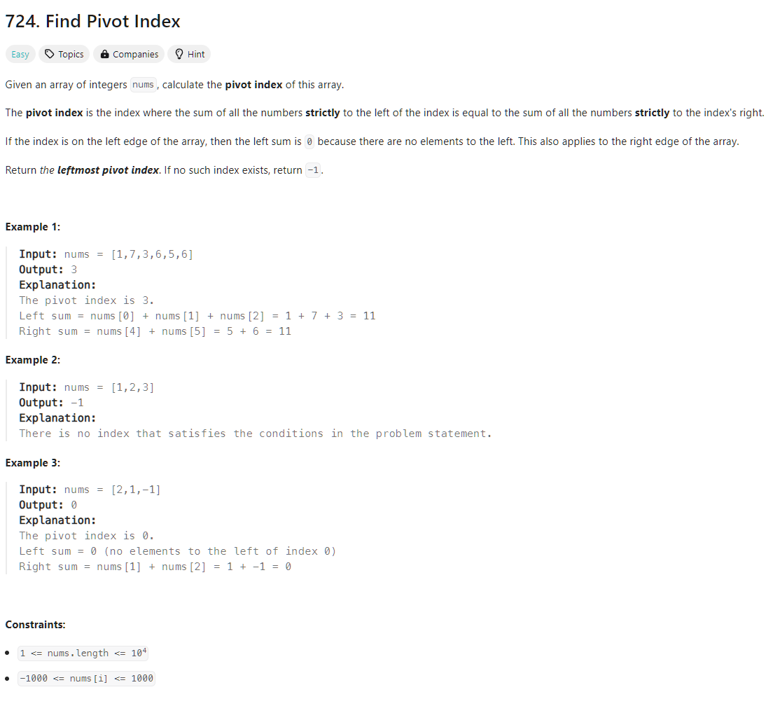 https://leetcode.com/problems/find-pivot-index/description/