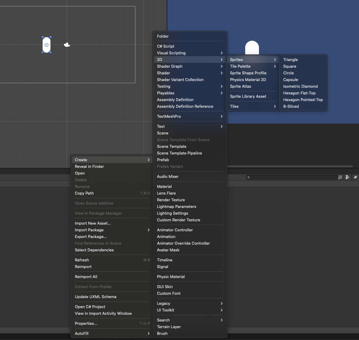 Hierarchy 창에서 상단의 [+ 버튼]을 클릭하고 [2D Object] > [Sprite]를 선택합니다.