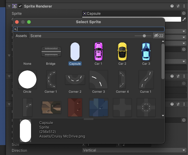 - 원하는 차량 스프라이트를 선택합니다. 여기서는 Car3를 선택하겠습니다.