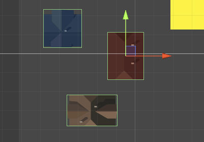 - 프로젝트 창에서 도로 스프라이트들을 선택하여 씬(Scene)에 배치합니다.