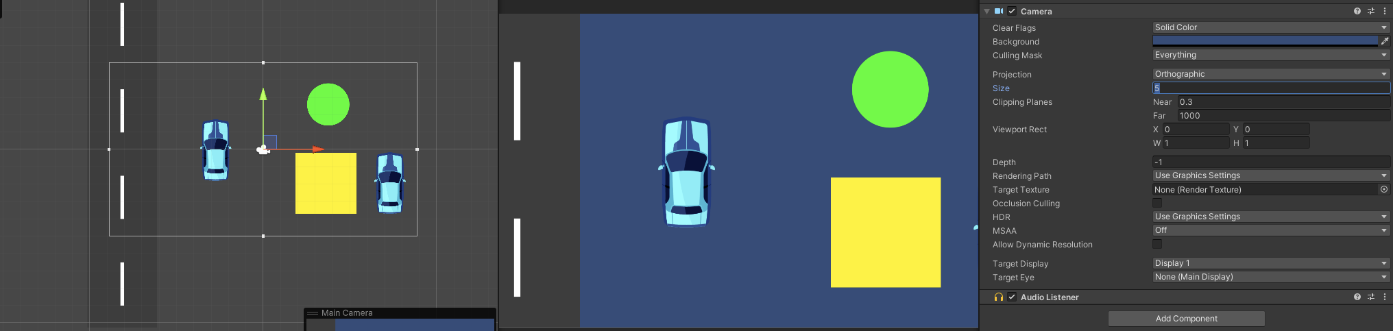 - Inspector 창에서 Camera 컴포넌트의 "Size" 값을 찾습니다. 이 값은 카메라가 게임 세계를 얼마나 넓게 볼 것인지를 결정합니다.