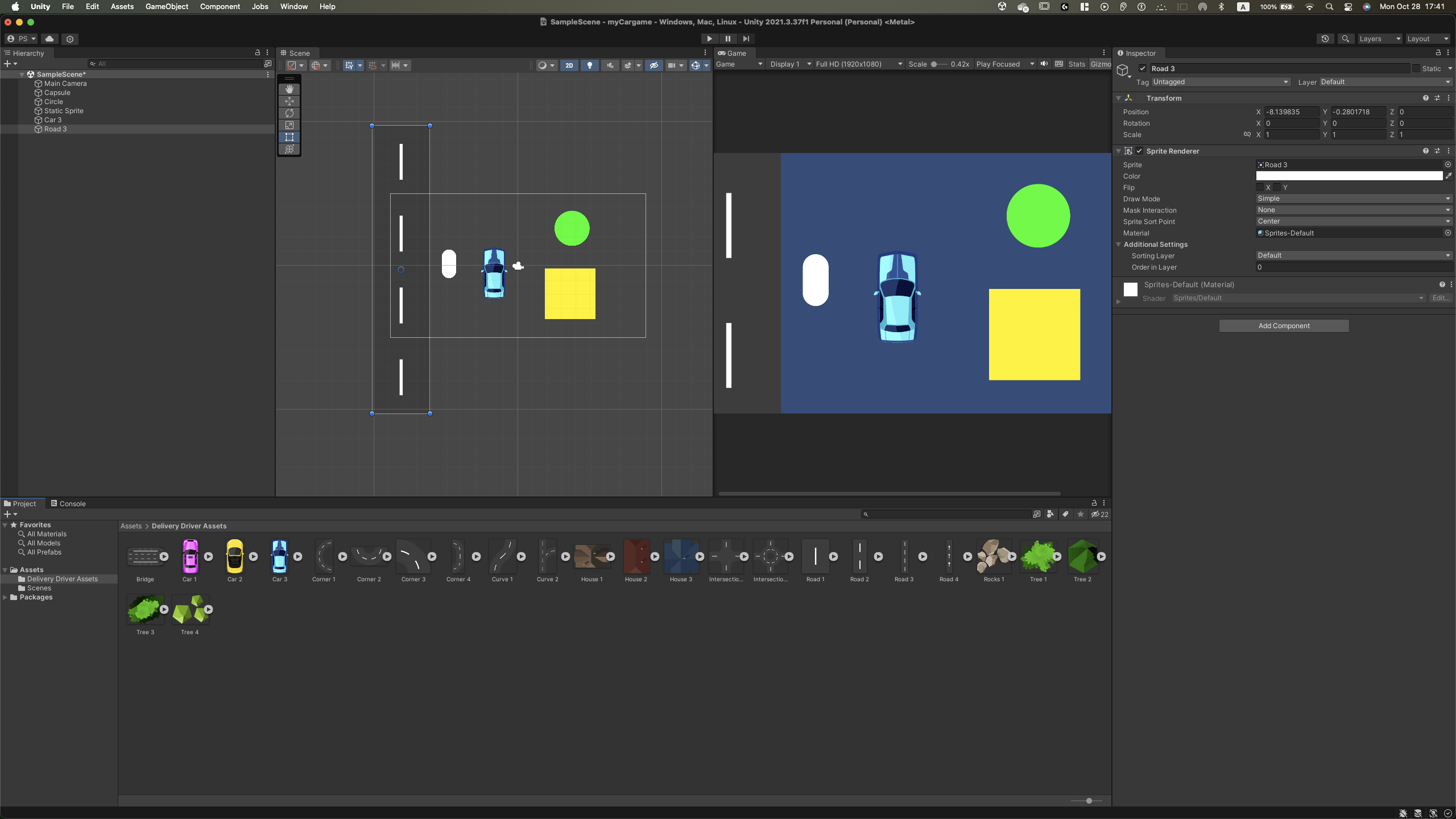 - 도로 에셋: 도로를 드래그하면 자동차와 적절한 비율로 나타날 수 있습니다.