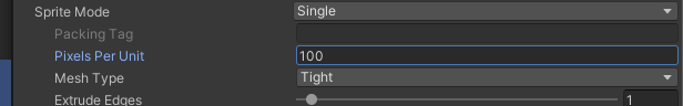 - 'Pixels Per Unit' 값을 확인합니다. 기본적으로 100으로 설정되어 있을 것입니다.